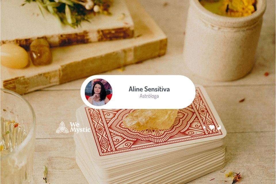 Aline Sensitiva é numeróloga, astróloga e taróloga, conhecida por unir sabedoria espiritual e intuição profunda em suas orientações. Com um olhar sensível para as energias do universo, Aline decifra os mistérios dos astros e dos números, guiando pessoas no despertar da alma, na cura interior e na reconexão com o propósito divino. Sua missão é iluminar caminhos e mostrar que, quando nos alinhamos ao cosmos, a vida flui com mais harmonia, prosperidade e amor.
