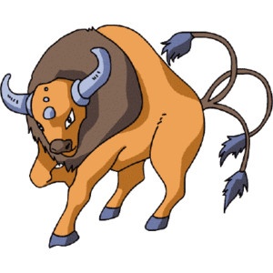 O Pokémon dos taurinos só podia ser o Taurus. Em forma de touro e com características do signo, tudo nos leva a crer que os criadores do Pokémon levaram em consideração o Zodíaco para distribuir as habilidades das pequenas criaturas.